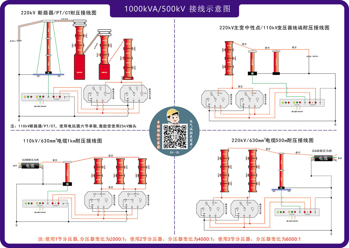 1、空升,如果空升能够升到试验电压,请依次从下面步骤排除。空升不能升到试验电压检查电抗器、分压比设置是否正确。